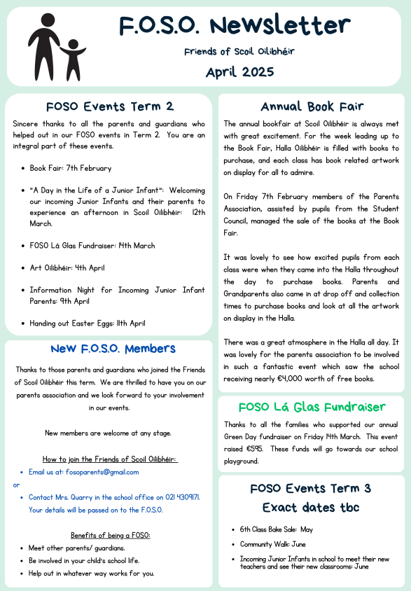 FOSO Newsletter April 2025 7 Apr Written By Áine OMahony The FOSO Newsletter for April 2025 can also be viewed and downloaded here! Áine OMahony